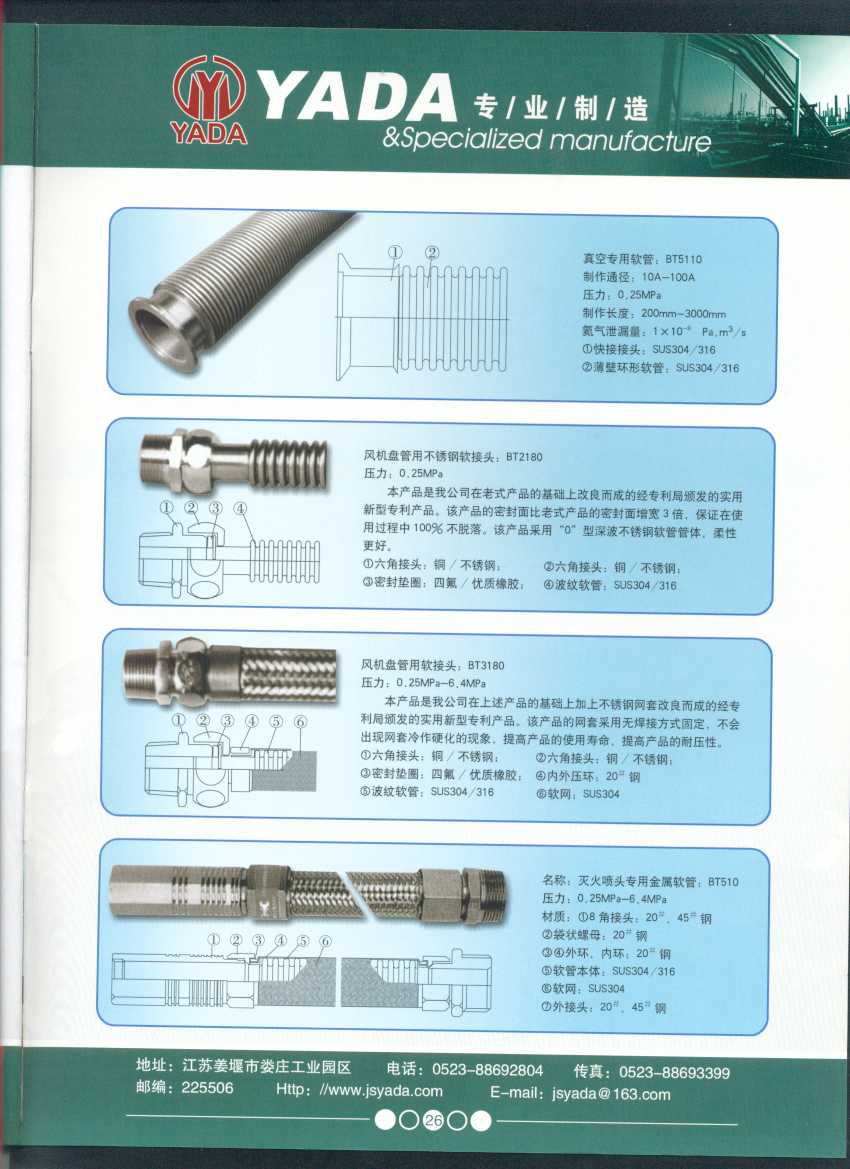 秉天時 籍地利 仰人和 虔誠一個永恒的理念,創(chuàng)新永續(xù).百諾不如一信,亞達人堅持以信為本,視客戶如同上帝,把對信譽的追求,體現在嚴格的質量控制和完善的客戶服務上,讓客戶百分之百滿意是亞達人不變的信念。 本廠系ISO9001質量認證企業(yè)、計量合格企業(yè)。本廠專業(yè)致力于生產不銹鋼金屬波紋軟管、超高壓、高壓膠管、波紋管補償器(膨脹節(jié))、立式、臥式、冷卻器。本廠產品具有承受壓力高、彎曲半徑小、抗疲勞性能強、使用壽命長等特點。廣泛應用于電力、石化、冶金、水泥建材、工程機械、礦山及液壓系統。產品暢銷全國各地。 今日亞達之成功源自諸多客戶的厚愛,明天的輝煌更離不開您對我的支持與信賴。查看更多>>